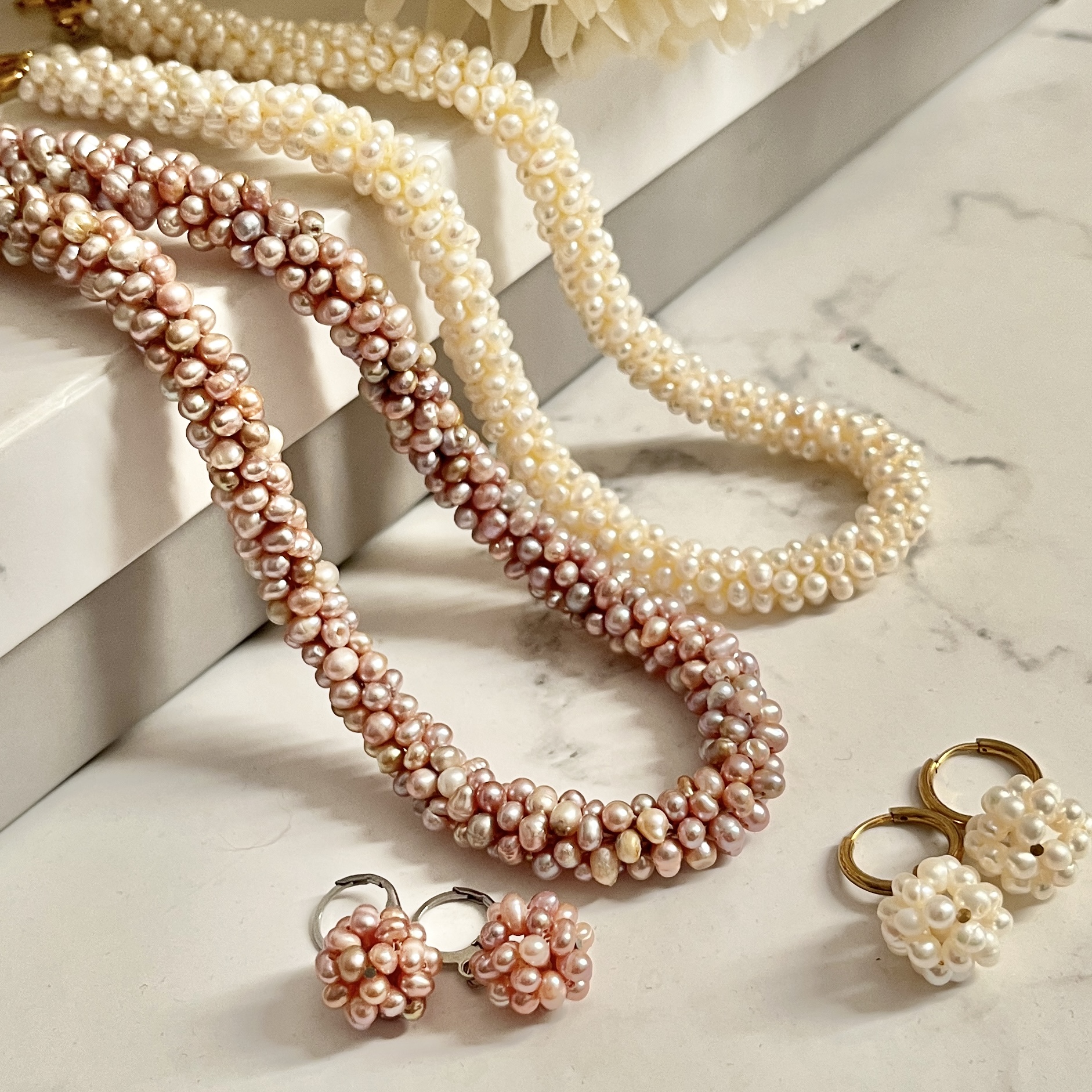 تمام جزئیات با ظرافت ساخته شده است مروارید پرورشی باکیفیت، برای استحکام بیشتر و استیل ضدحساسیت.
